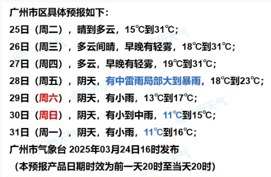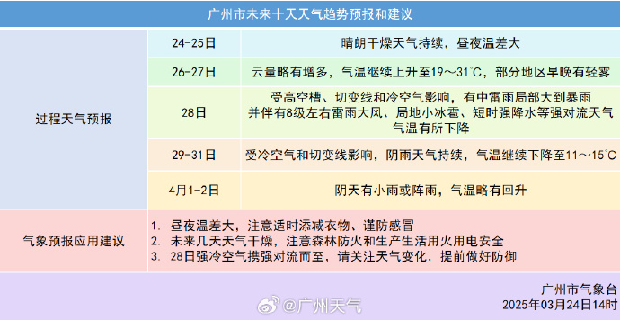 @广州天气 预测,25日,天晴干燥,昼夜温差大;